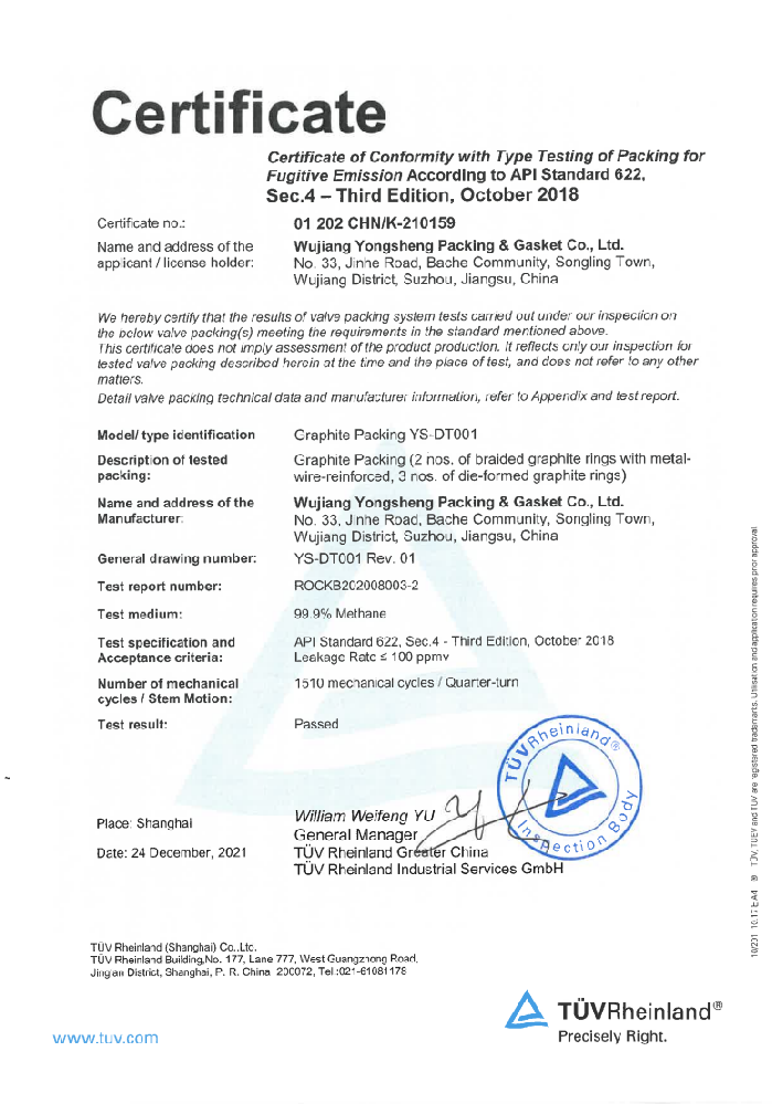 TUV萊茵證書--API622回轉(zhuǎn)桿