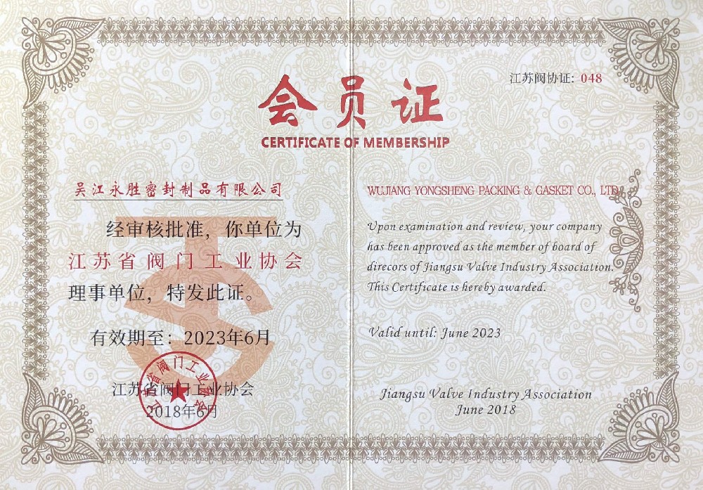 江蘇省閥門協(xié)會會員證